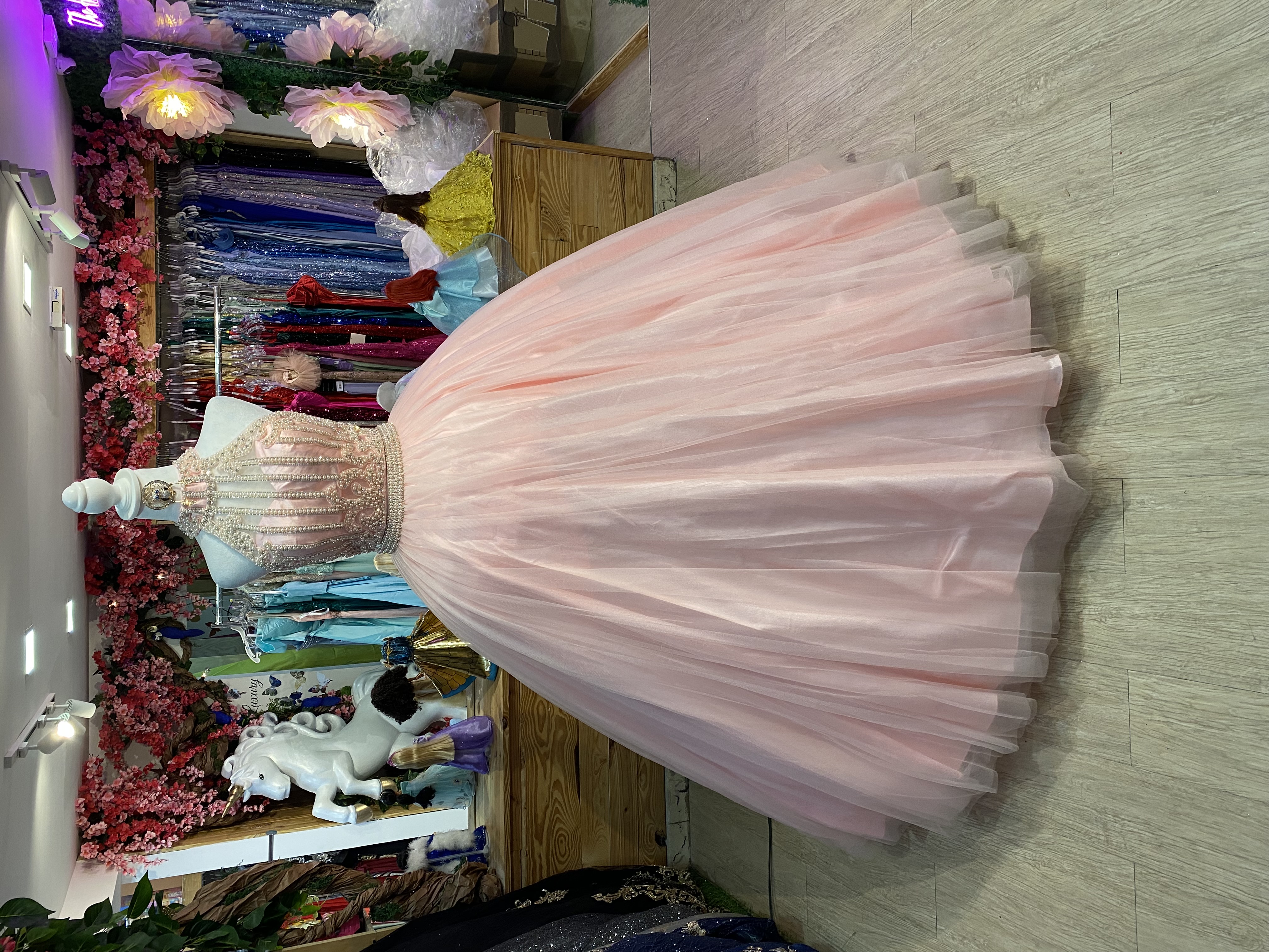 Vestido de 15 años Strapless decorado con Pedreria en corset y falda corte Princesa