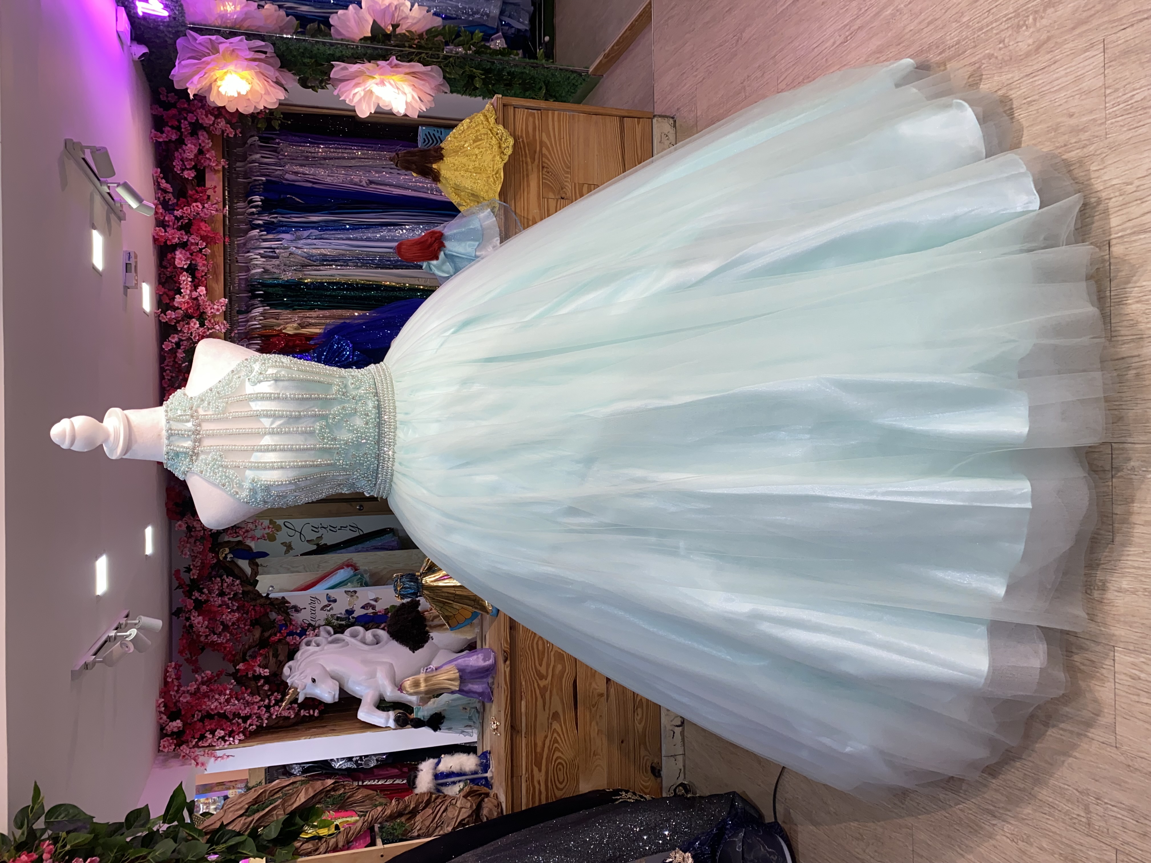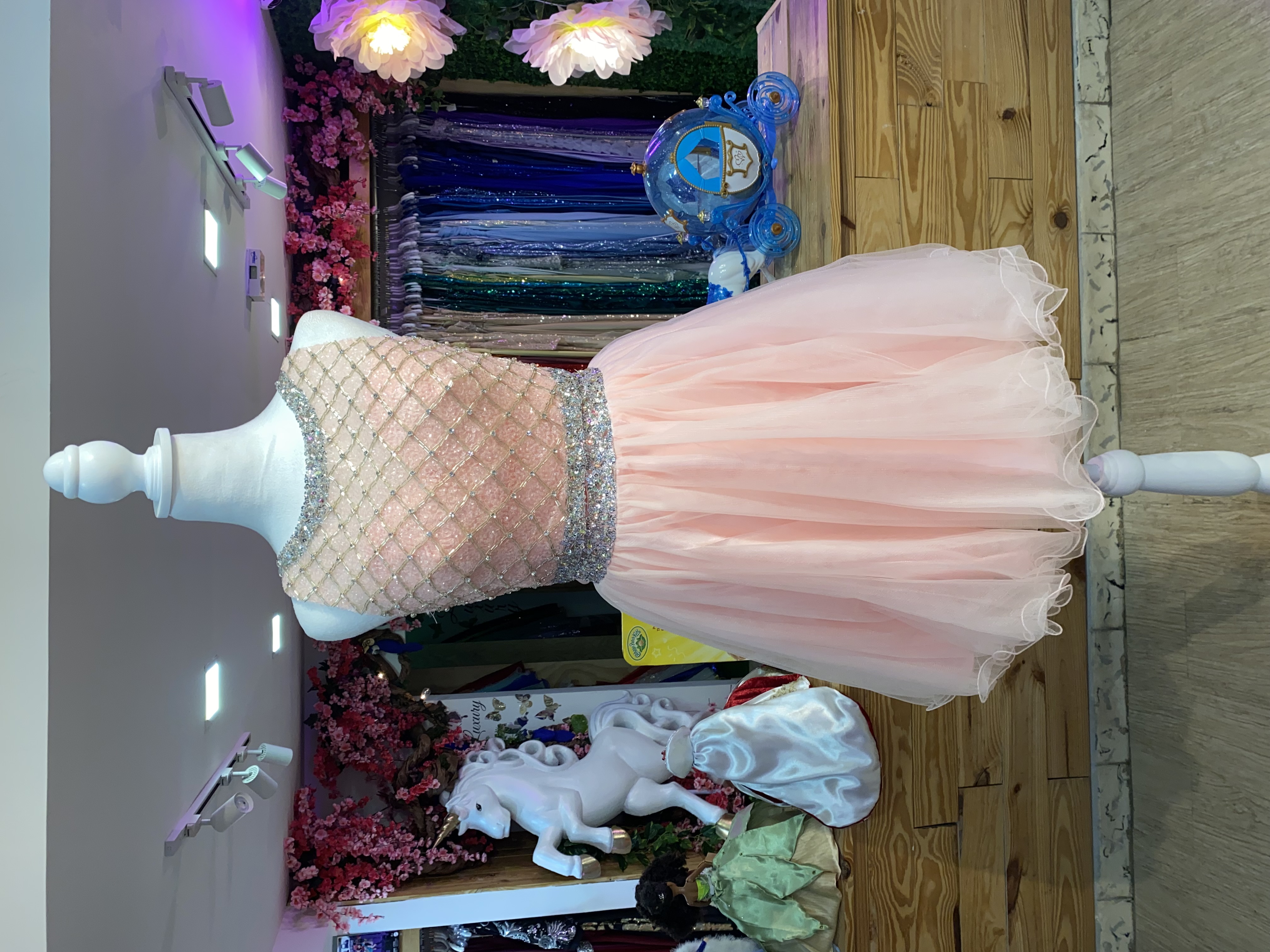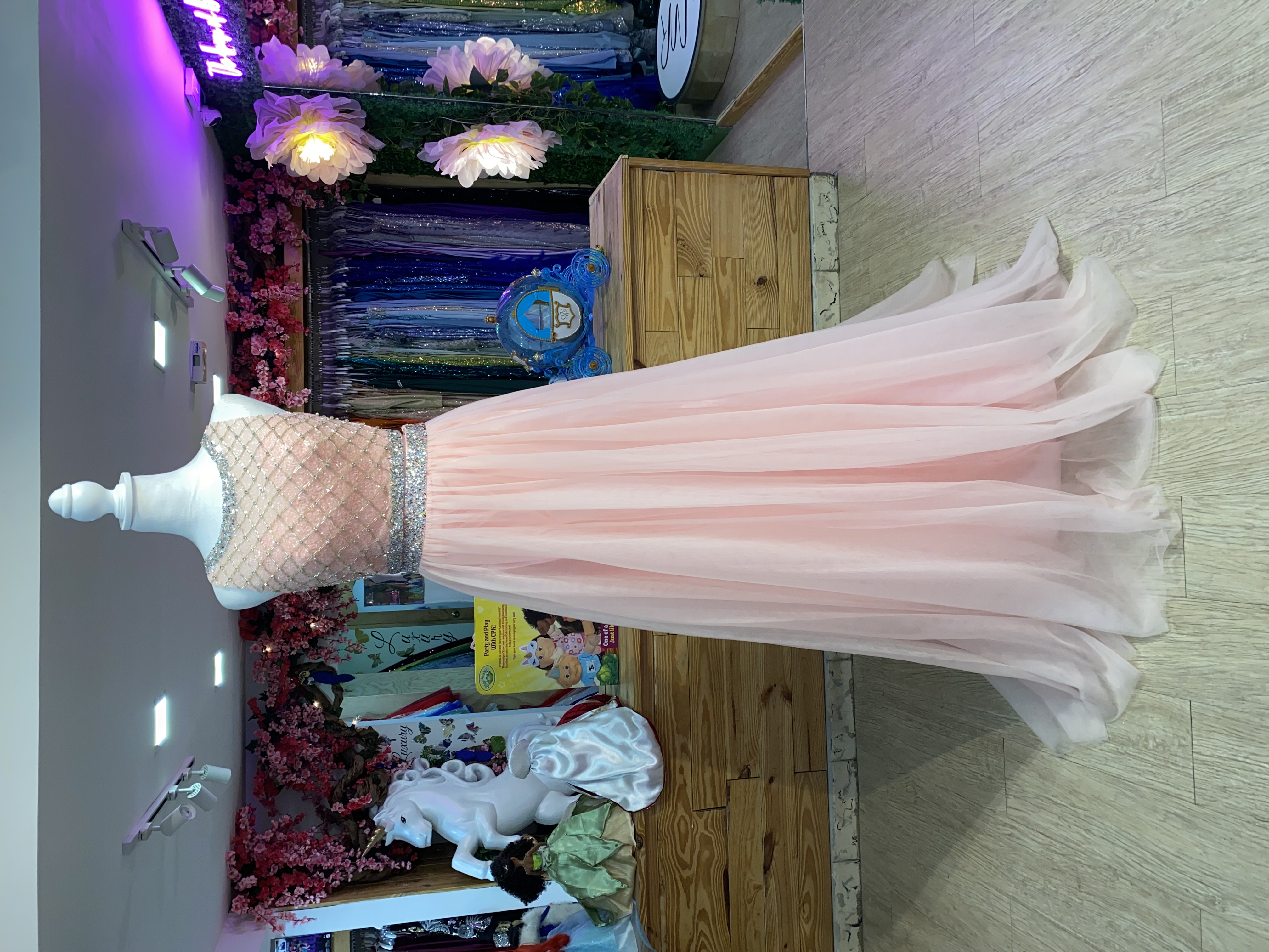 Vestido de 15 años de 3 piezas decorado con canutillos en Top