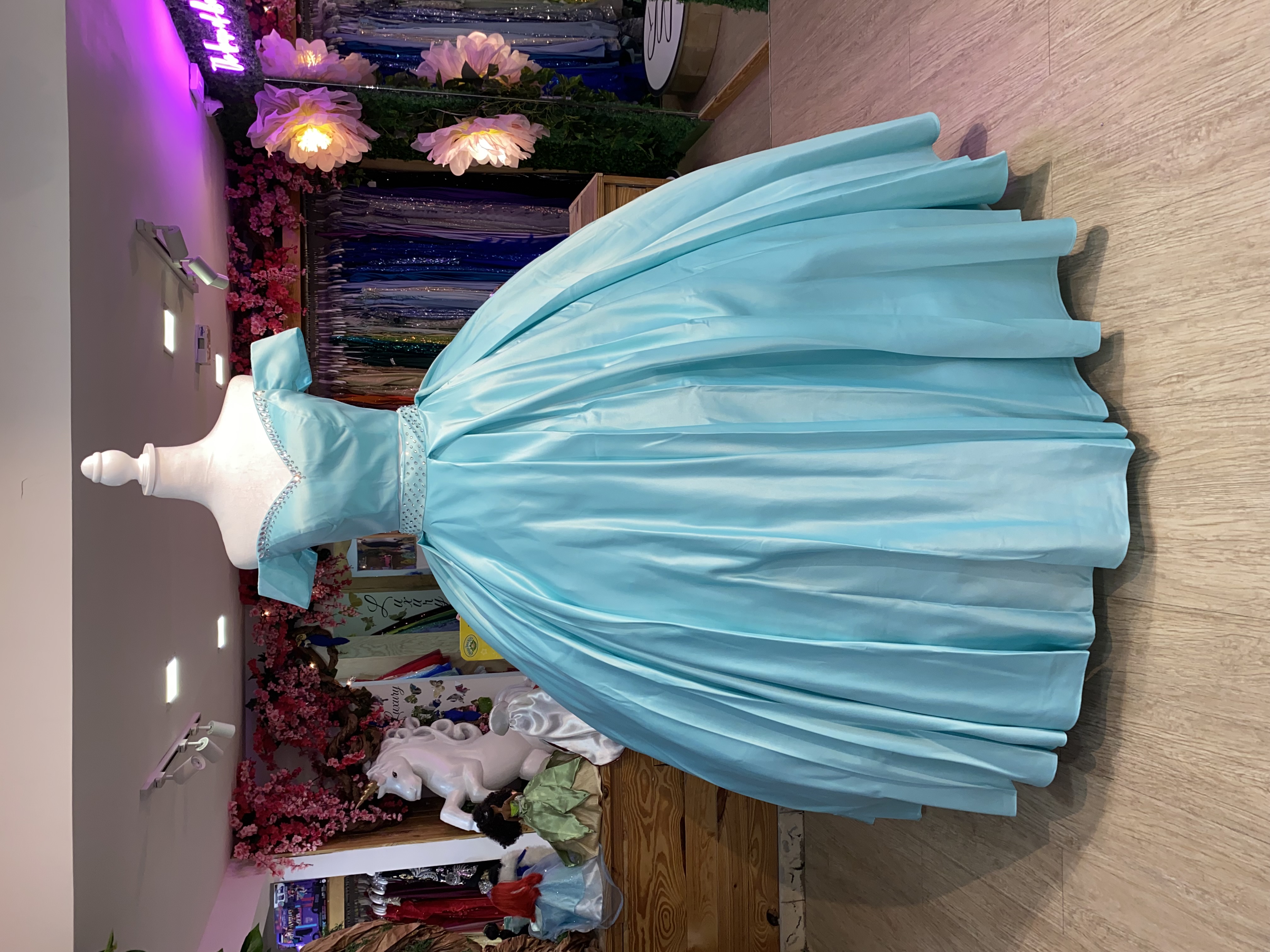 Vestido de 15 años en tela de Flores cuello corte en V y falda corte Princesa