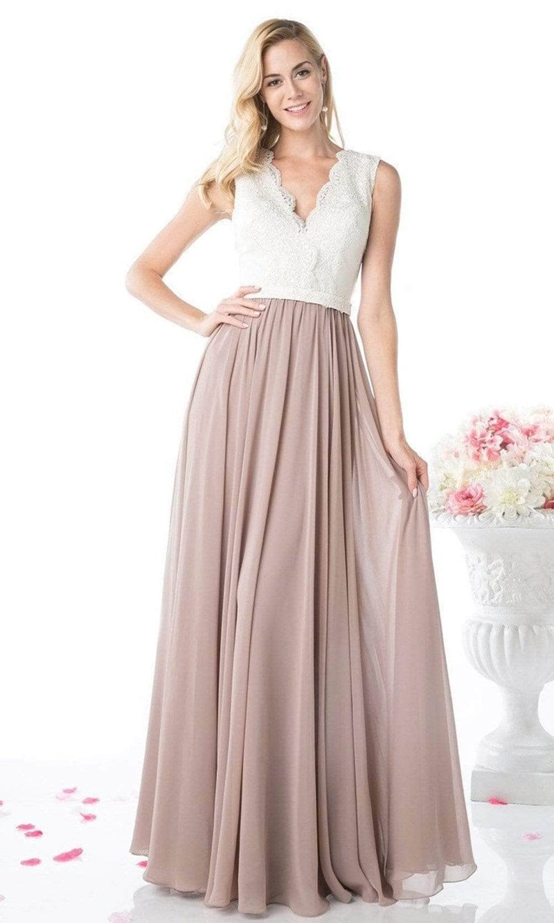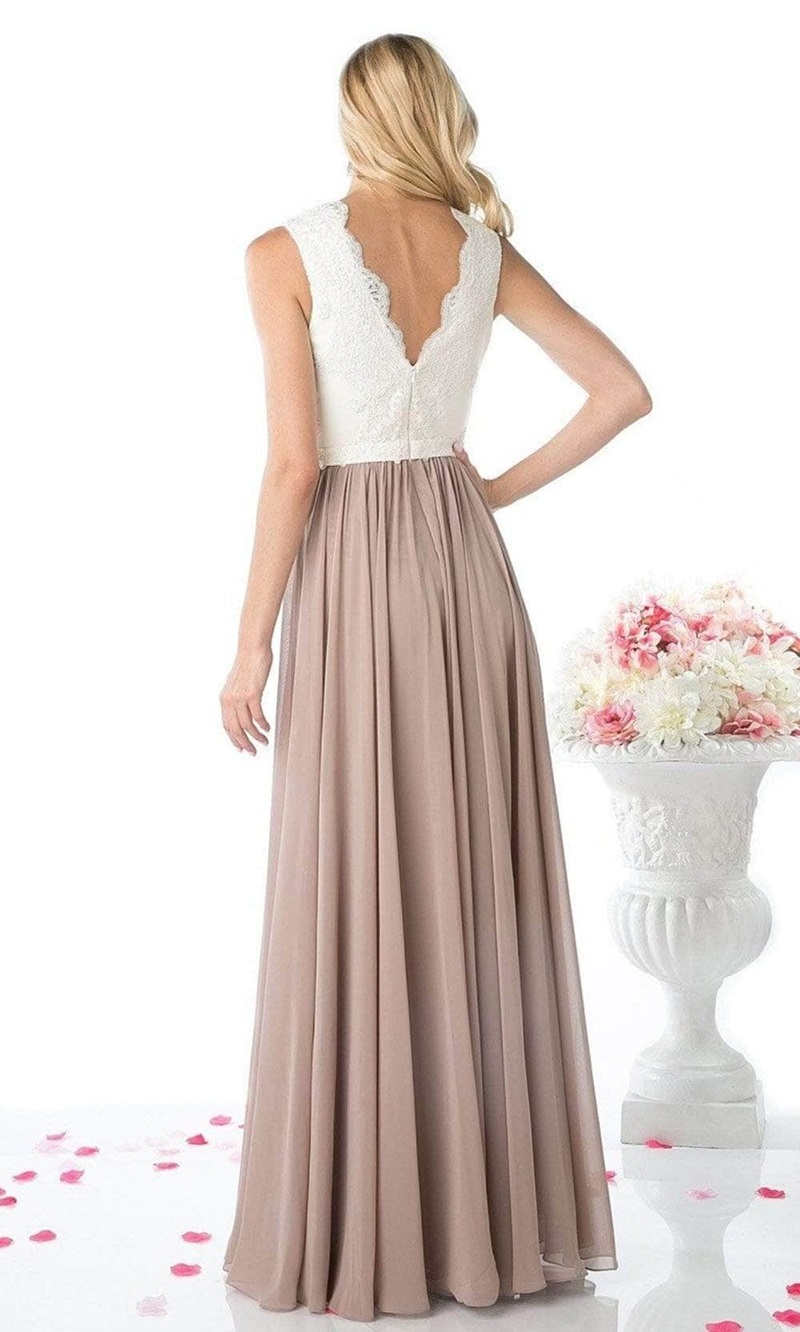 Vestido de Gala cuello en V con apluques en Top y falda corte A