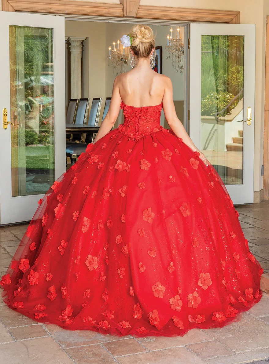 Vestido de Gala Strapless copas en punta decorado con pedreria plateada en corpiño y abertura con cola lateral