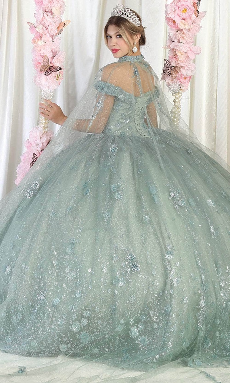 Vestido de 15 años Off Shoulder en tela de glitter decorado con apliques y decoraciones en glitter falda corte princesa