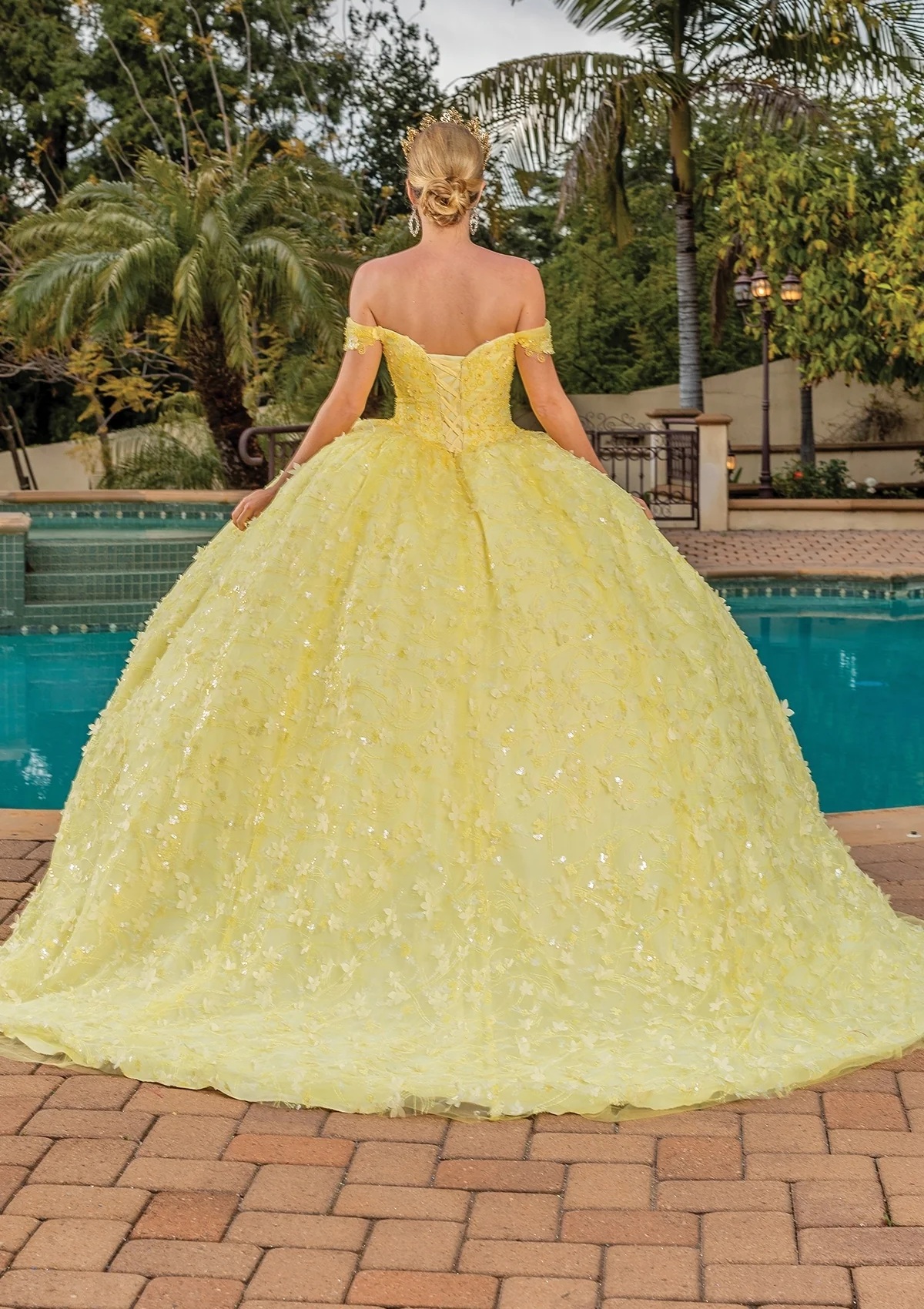 Vestido de Quinceañera corto de tiras, estilo corset con transparencia decorado con apliques de flores y falda con Flecos de Tull