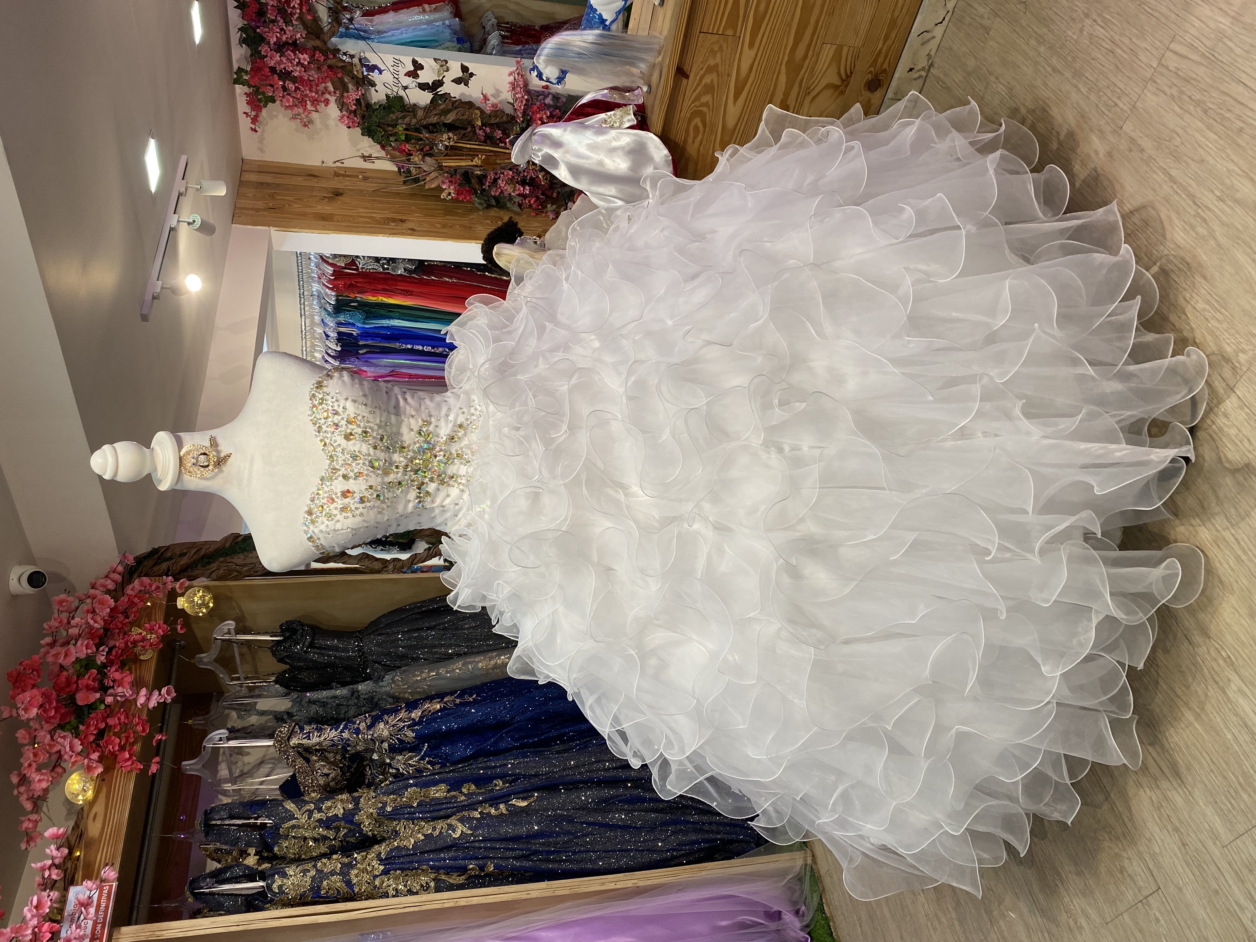 Vestido de Gala Off Shoulder estilo corset con transparencia decorado con Glitter y falda corte Sirena